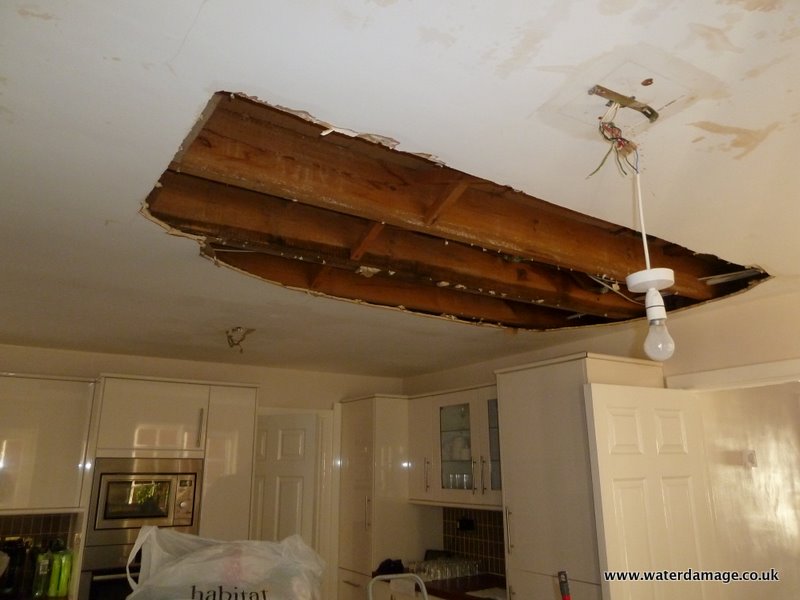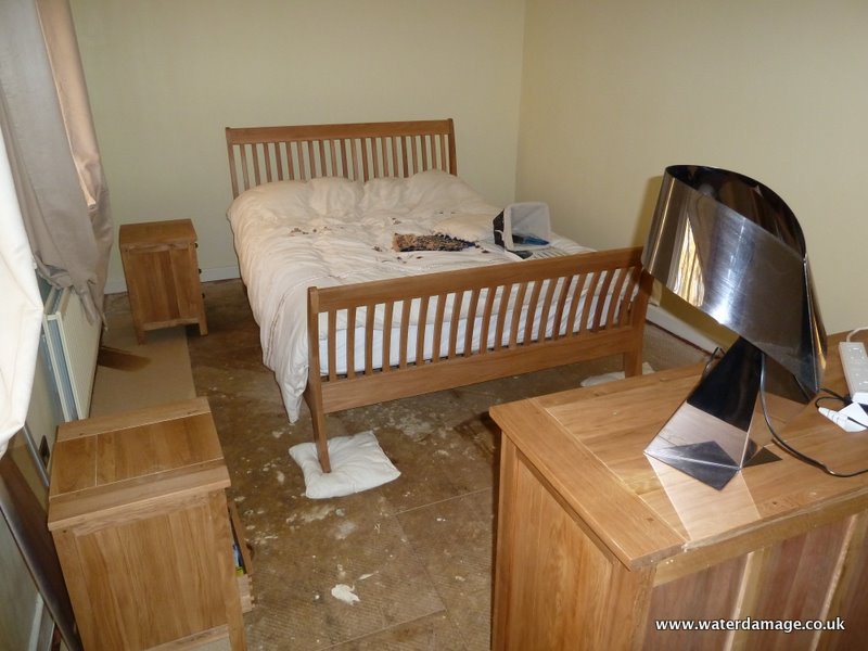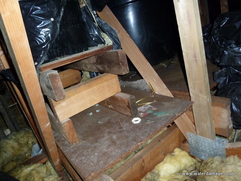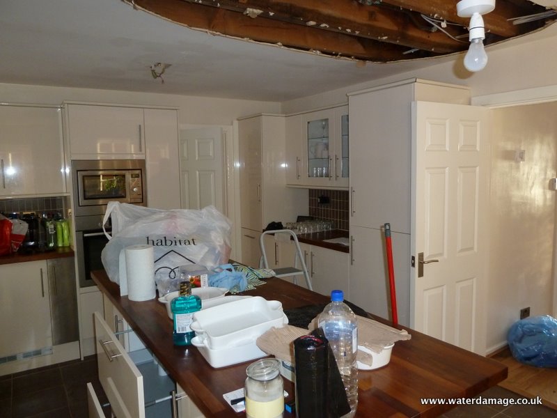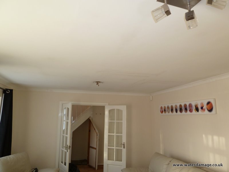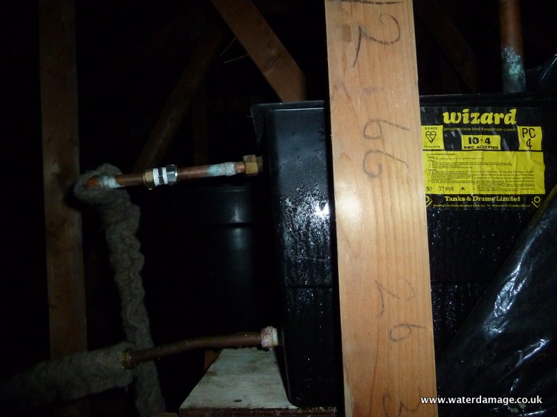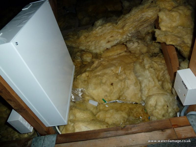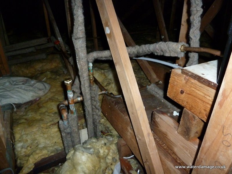 Because of the very cold weather a pipe in the loft froze expanded and pushed the fitting away from the central heating expansion tank, the escaping water must have been flooding out for at lest 48h before a neighbour sounded the alarm and the fire brigade were called that cut the water off and the following day the owners returned to all the damage. dehumidifiers